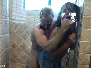 Nach mehreren Wasserlassen bettelt sie um einen Fick mit zwei Kerlen